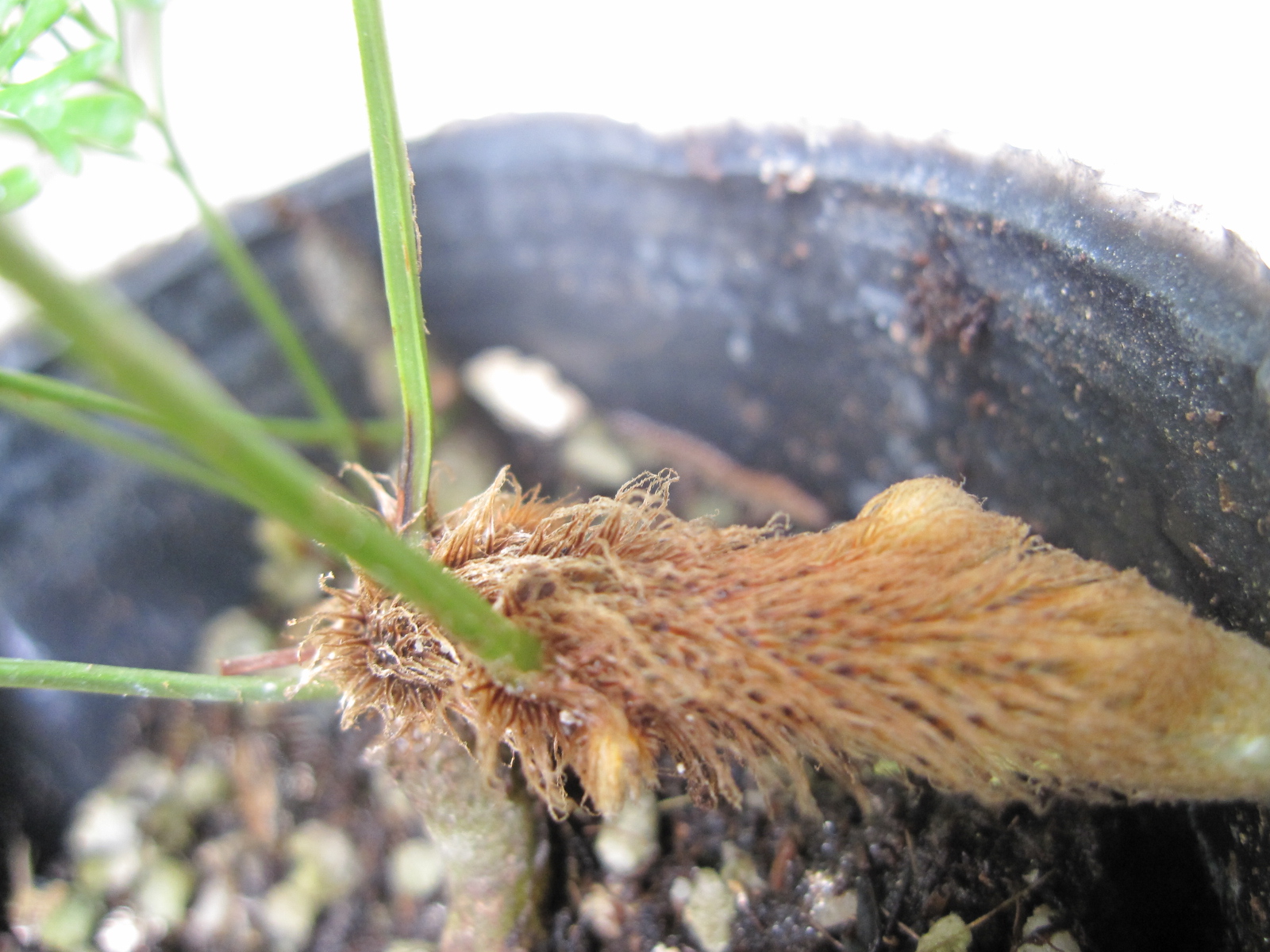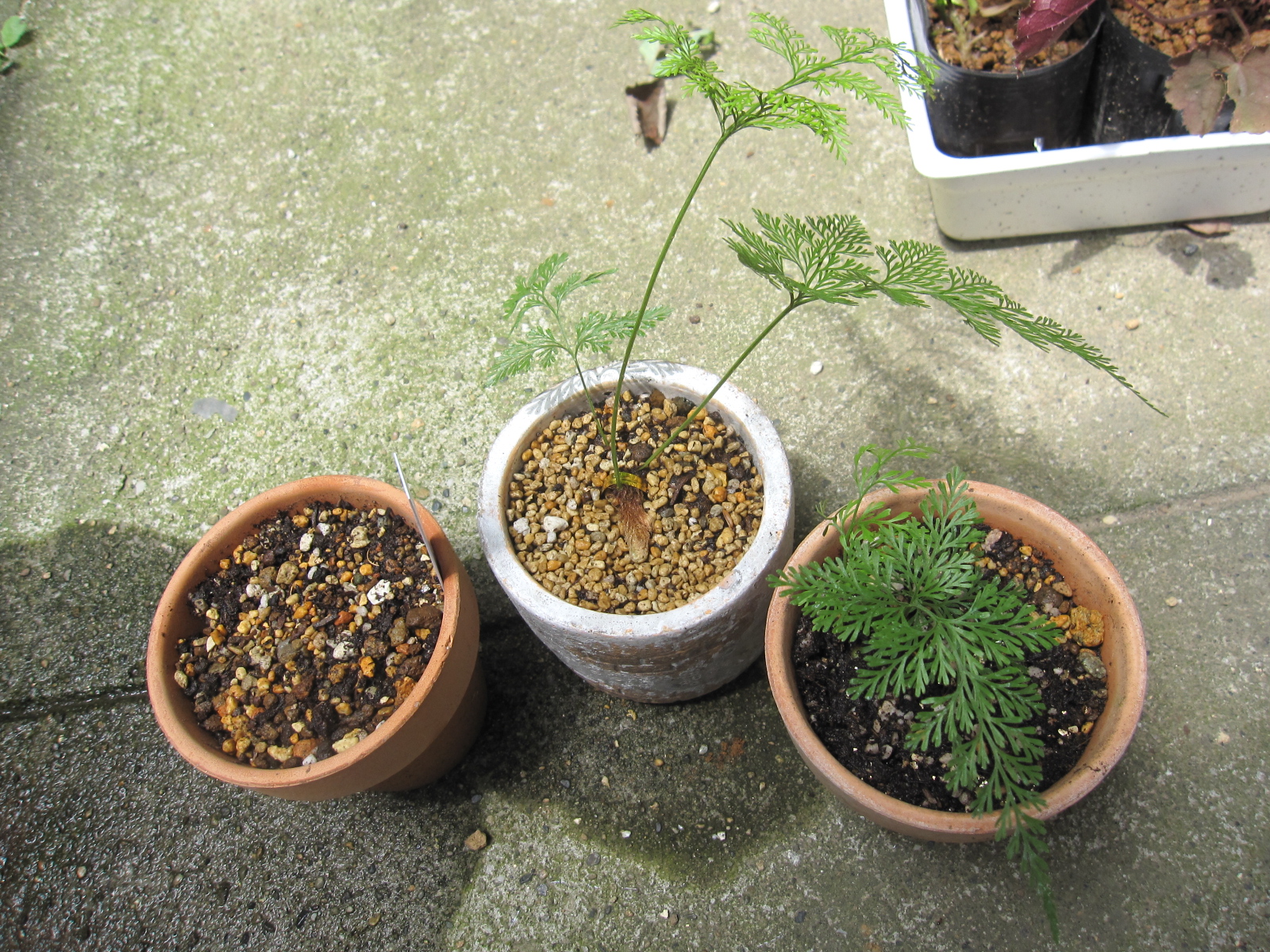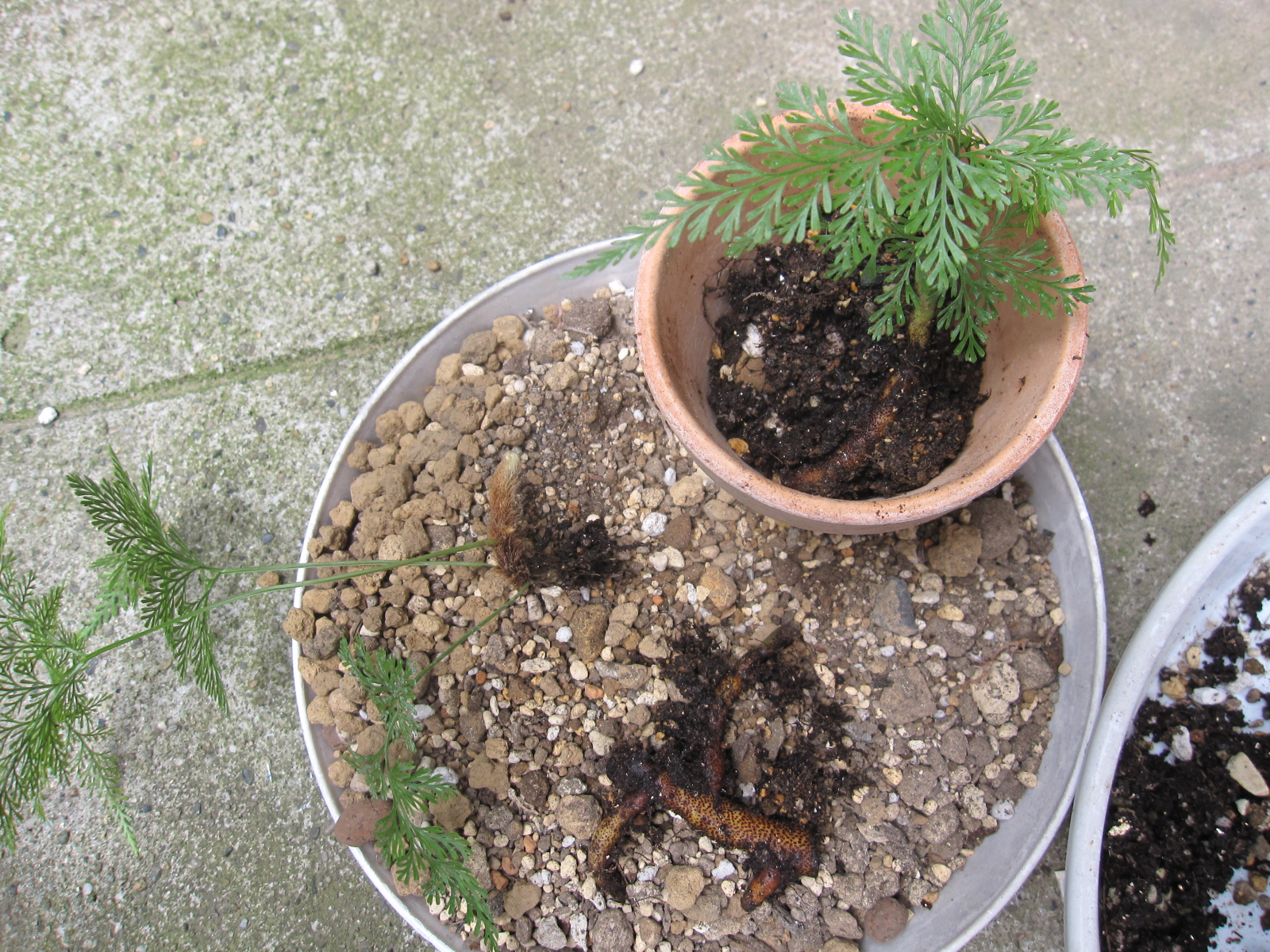 葉の付いているもの二つと、根の塊みたいなの(葉なし)。