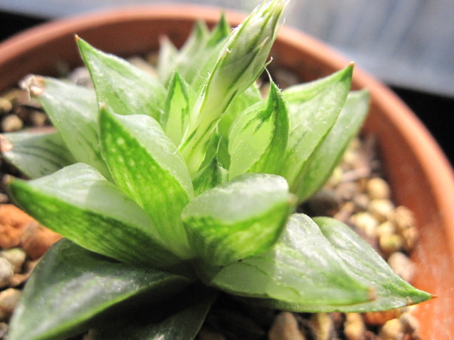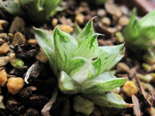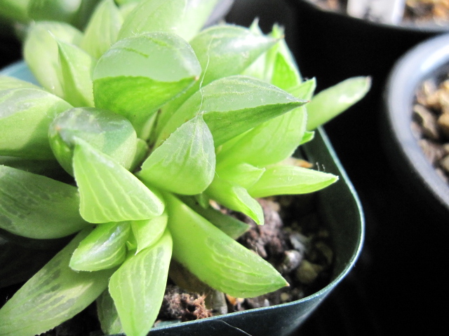 白斑は抜けてしまっているのですが、大きな窓の透明感や葉裏の刷毛をすっと引いたような感じが素敵だと思います。