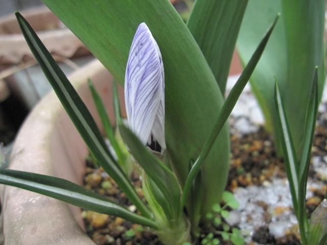 4号の素焼きラン鉢に植えてあるんですが、秋の時点で根詰まりしているのわかってた。