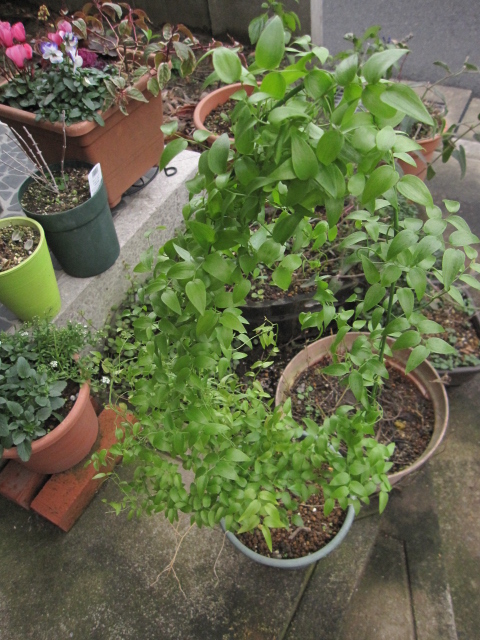 例年なら地上部が枯れて、春にまた芽吹いて、の繰り返しなのだけれど、暖冬のおかげで枯れない。