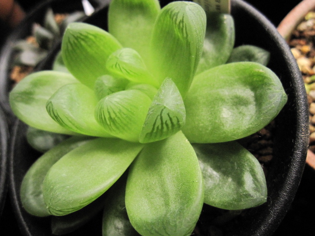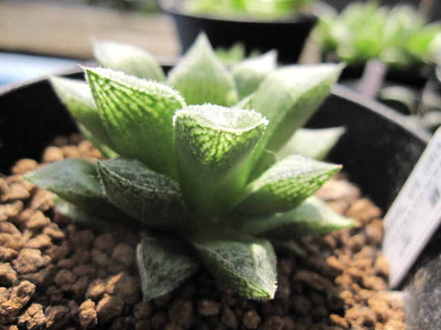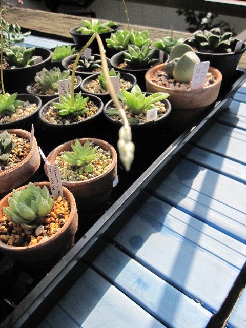 花芽を見てもわかる通り、冬でもコンスタントに水をもらっていたハオルチアは徒長してるものが多数。