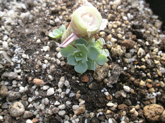 カットした頭部分が鉢を覆うくらいの大きさになので、この子らにはまったく日が当たらず、ヒョロヒョロで色白でか弱い感じ。