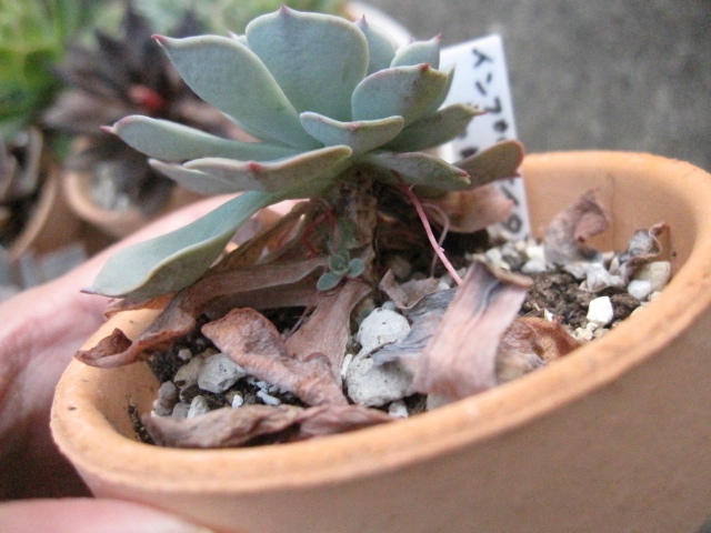 真夏はともかく涼しくなって、他の多肉たちがどんどん動き出しているのに、下葉がどんどん枯れてくる。