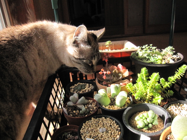 猫のピコちゃんががんばって多肉のお世話をしてくれるので助かってます。