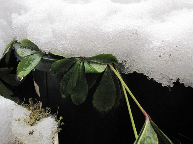 折れて困るものはそれなりに避難させるか、自己流雪囲いをしてあるので無事ですが、それ以外のものは今現在どうなっているのやら。