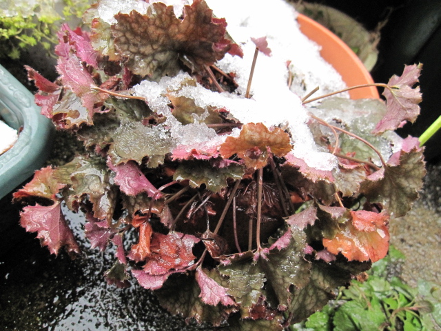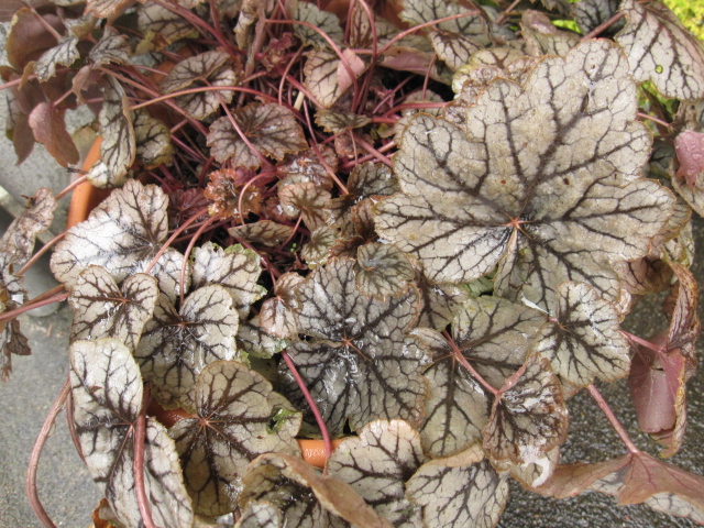 ヒューケラ ’プリンス・オブ・シルバー’は寒さにあたってかっこよくなった。