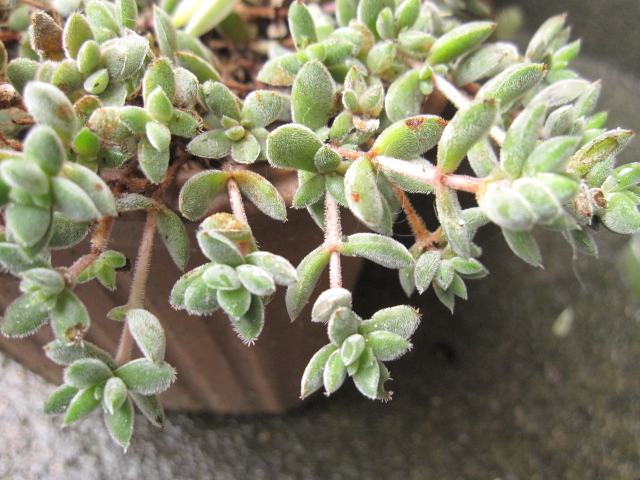同じくクラッスラのリトルミッシーはこの鉢では過湿すぎて枯れてしまったが、レモータは耐えてる。
