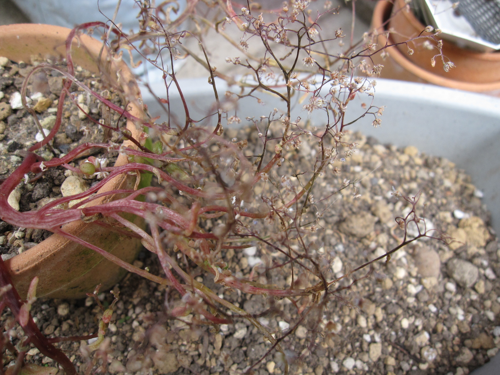 カーペットカスミソウは少しだけ種が取れたので、それも同じ鉢にばら撒いておきました。