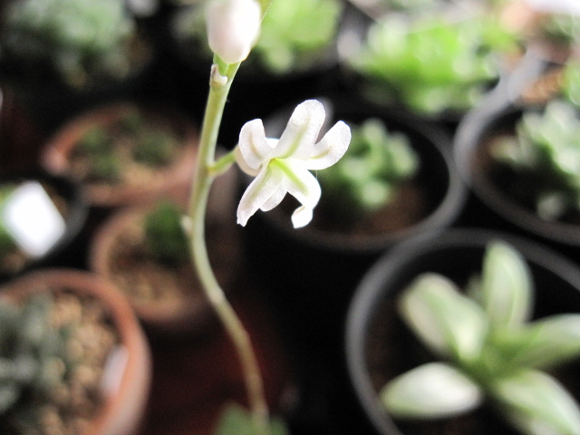 外は雪景色で寒いけど、家の中ではハオルチアの花が咲いてた。