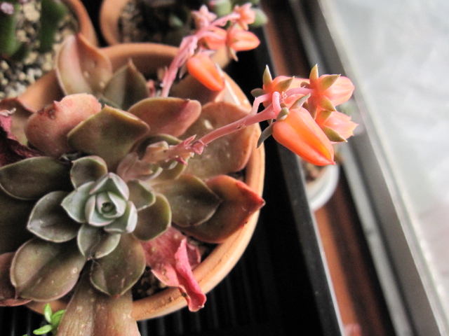 どうってことないエケベリアの花そのものだけど、この時期に咲いてくれるとなんか得した気分。