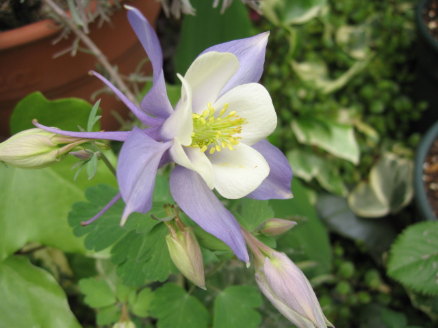 あっちこっちから、このオダマキのお子さんであろうと思われる斑入りの葉っぱが出てきてます。