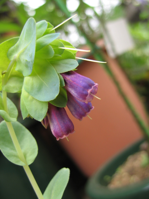 青みがかった葉と蛍光を発しているような不思議な紫色の花が素敵。
